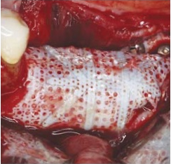 Das einzigartige, kreisförmig makroporöse Design der Reinforced PTFE Meshes ermöglicht den direkten Kontakt zwischen Knochentransplantat und Periost, sodass die natürlich vor- kommende Revaskularisierung und Infiltration von Zellen in das Knochentransplantat stattfin- den kann. Die feine Titanverstärkung der Meshes dient dem Raumerhalt bei horizontalen und vertikalen Kieferkammaugmentationen. Die PTFE Meshes haben eine Dicke von 200 μm und passen sich leicht allen Gewebekonturen an.
