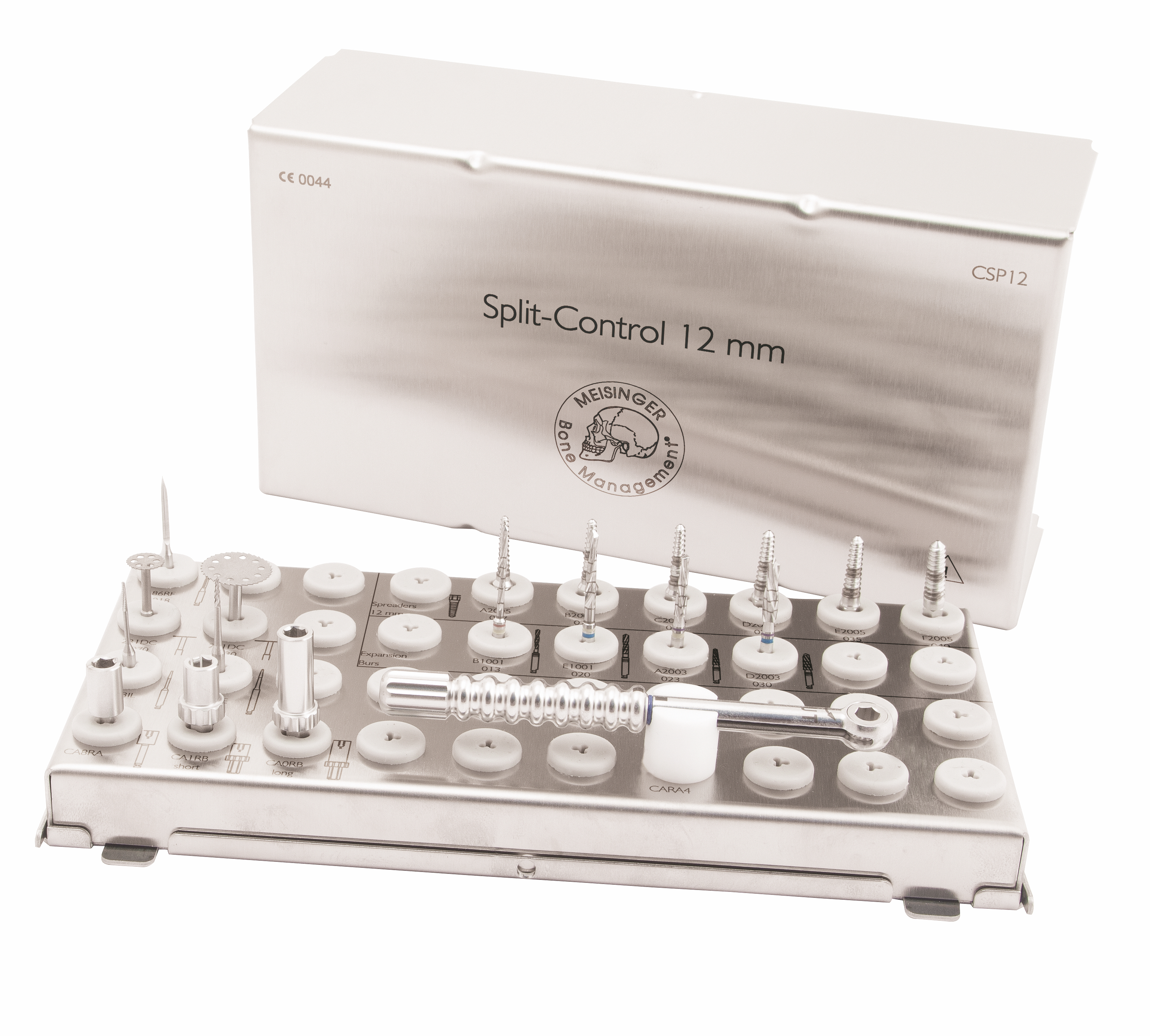 Split-Control 12 mm ist ein System zur sanften Verbreiterung des Alveolarkamms und gleichzeitiger lateraler Knochenverdichtung bei horizontalem Knochendefizit. Mit Hilfe spezieller schraubenförmiger Verdichtungs- und Spreizinstrumente (Spreader) kann horizontal resorbierter Knochen kontrolliert und sanft aufgedehnt werden (Bone Spreading). Zusätzlich wird dabei spongiöser Knochen dank der speziellen Geometrie der Spreader verdichtet (Bone Condensing) und so die Primärstabilität der inserierten Implantate erhöht.