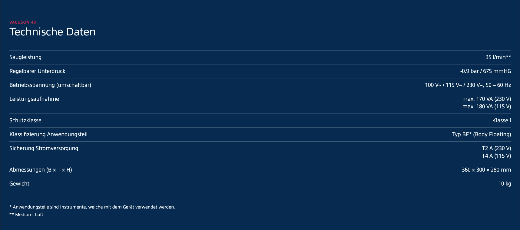Vacuson 40 - Vielseitige, qualitativ hochwertige Absaugpumpe mit 35 l/min
